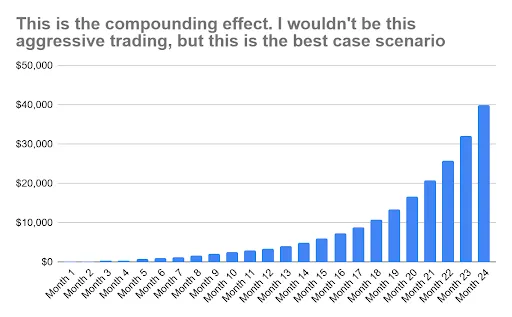 Let me give a big disclaimer --- trading isn’t easy and there will be ups and downs. All I did was take my current first month and project it out. Your months will never be this smooth. We’ll have even better months… and some months that are lower.
