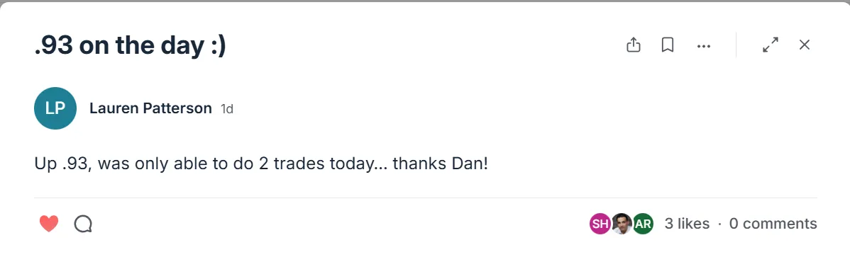 - You’re gaining confidence knowing a full time trader is sharing their ideas with you