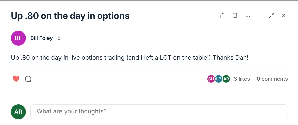 Every month, I’m going live inside our trading room to provide group coaching on our picks, how your trades are doing and more.