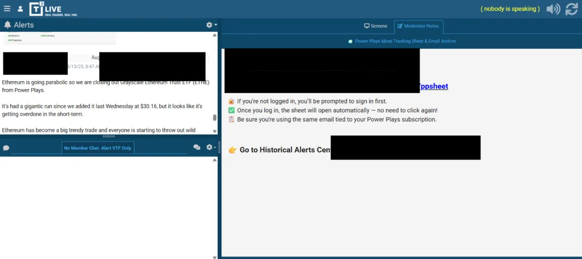 • Access to our high-end trading room so you can see all the alerts in real-time and see the open trades